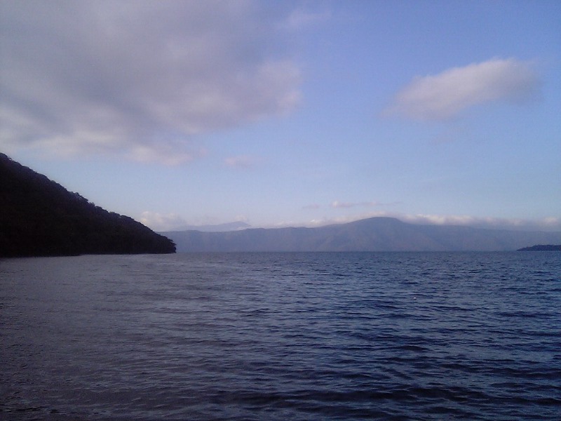 | Lake Towada viewed from the west shore to the north, with Mt Hakkoda. |