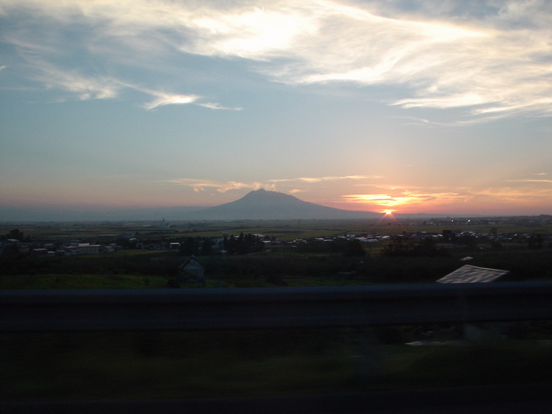| Mt. Iwaki viewed from the Tohoku-do highway, with sunset. |